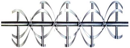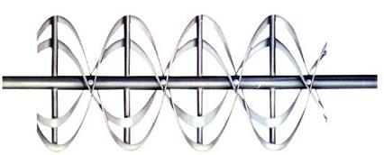 提供与连续式螺条相同的物料运动形式,只需要很小的动力,因此广泛用于高密度或高粘度物料。