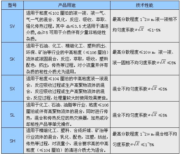三SV型混合器,此系列混合器混合精度高,但对物料比较苛刻,此设备不适合高粘度和物料中含固体颗粒的物料,但混合性能远远高于SK型和SX型,如物料中含颗粒状固体,设备易堵塞。