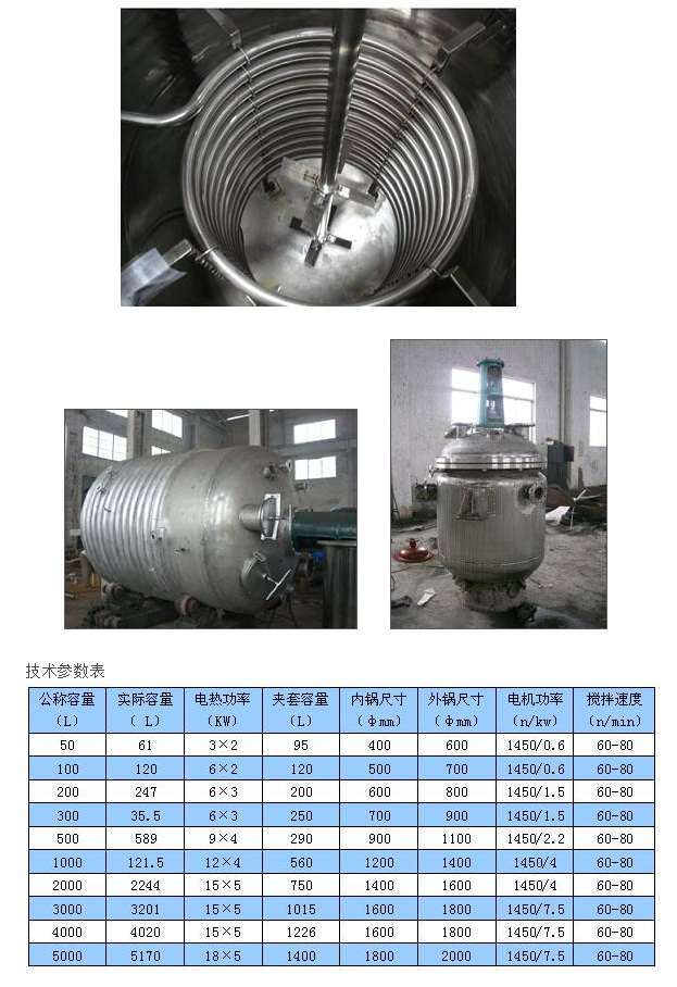 我厂生产的(电、蒸汽、导热油加热)不锈钢反应釜由锅盖、筒身、夹套、搅拌器、轴封传动装置及支承等组成,与锅内物料接触处的锅体和零部件均采用OCr18Ni9或1Cr18Ni9Ti不锈耐酸钢板制成。